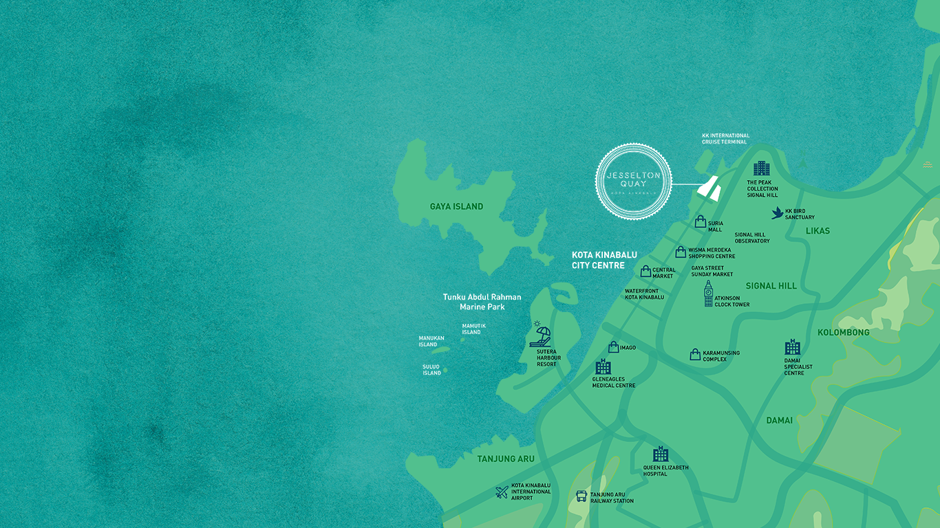Jesselton Quay is situated next to the upcoming Kota Kinabalu International Cruise Terminal and the Jesselton Point Ferry Terminal, providing direct ferries to nearby islands. It is easily accessible from the new Sabah International Convention Centre and Gaya Street, one of the most popular streets in Kota Kinabalu.
